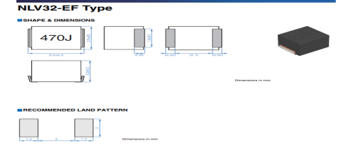 NLV32T-221J貼片電感的參數:感值:22uH±5%,阻值:21mΩ Max,電流50mA。如下圖: